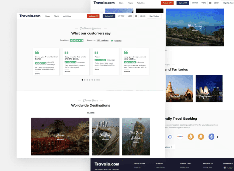 Travel booking platform with crypto payments—connecting travelers and properties with blockchain-ready commerce.