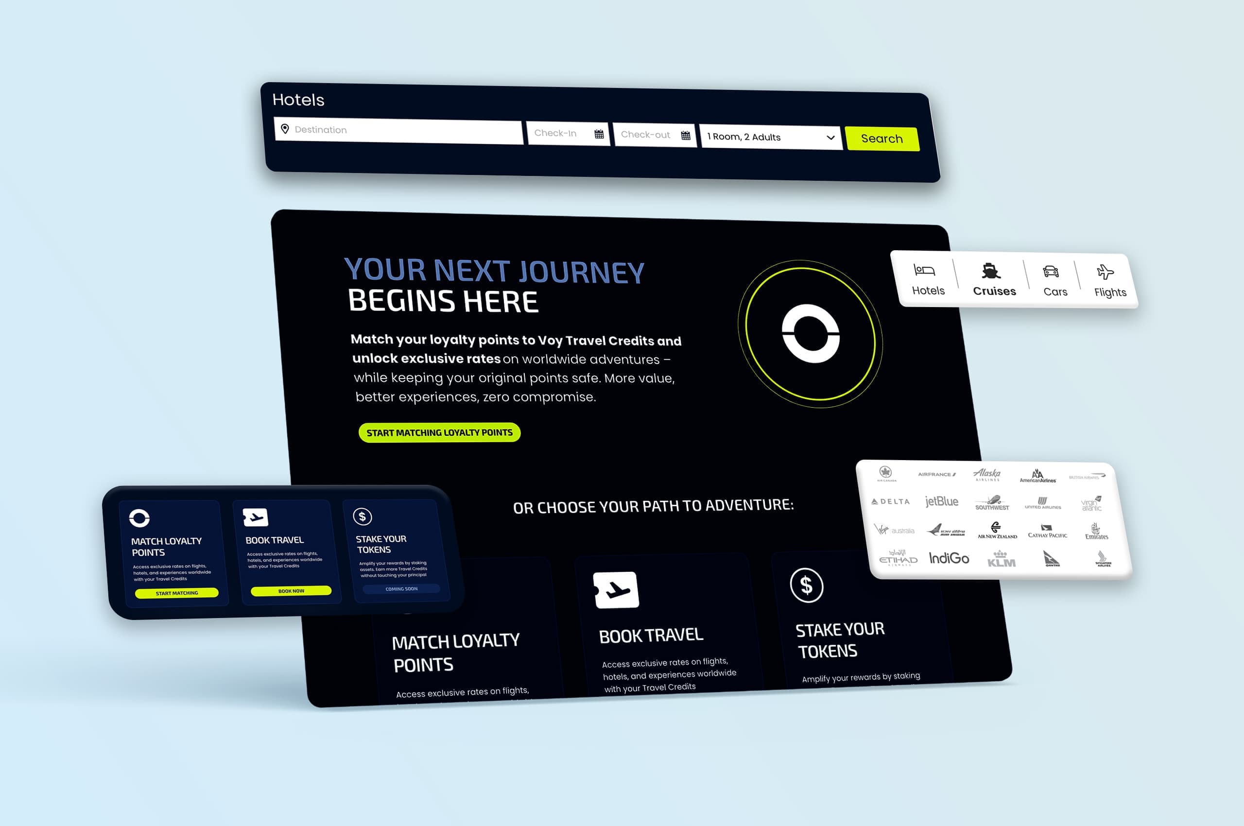 Web3 loyalty, tokenized rewards, and blockchain integration for travel booking—scalable travel commerce with on-chain incentives.